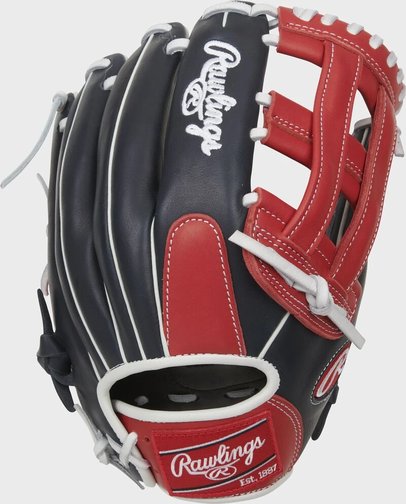 In addition, all our new Breakout series gloves offer exceptional comfort and feel – thanks to their padded finger-back linings, thermoformed wrist strap, and padded thumb sleeve. They even have reinforced palm pads for greater protection as well! This particular Breakout youth outfield glove was constructed with a youth pro taper fit pattern, which offers a smaller hand opening to provide a better fit and more glove control for players with smaller hands. Its Pro H-web is a top choice of many of the game’s premiere outfielders too. Lastly, the stylish red, white, and blue design is sure to make you the most talked about player on your team.