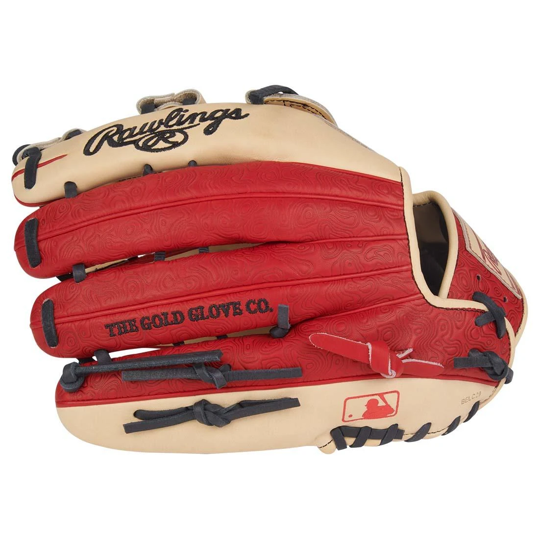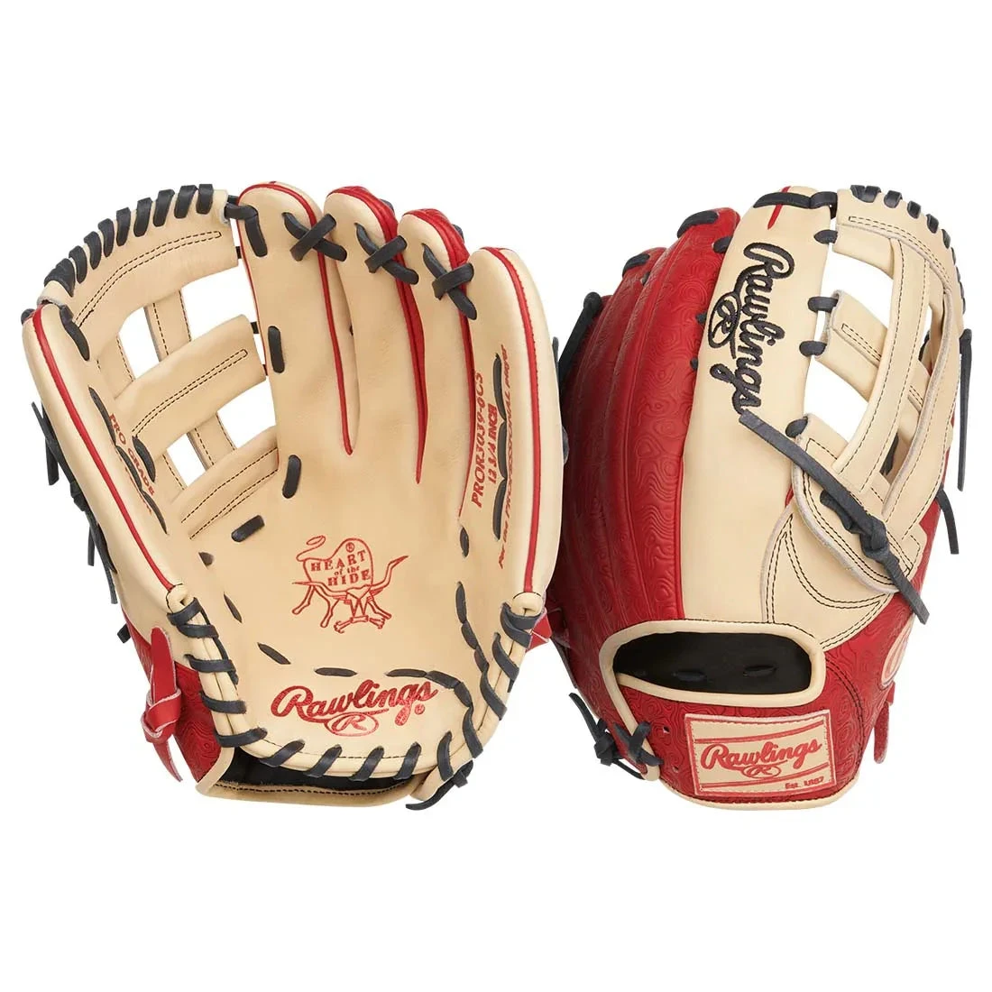 Run it down in style. The Rawlings Heart of the Hide 12.75″ (PROR3039-6CS) is built on the trusted 3039 outfield pattern — a deep, round pocket with a thumb-to-pinky close — made for outfielders who want maximum reach, secure ball retention, and a smooth break-in. The Pro H-Web gives you great visibility when tracking balls in the gap or at the wall, and because it’s part of the R2G (Ready 2 Go) line, it shows up factory softened with a re-engineered heel pad, so you only have about 35% player break-in to finish. Premium U.S. steerhide, a deertanned cowhide palm lining, padded thumb sleeve, and thermoformed wrist padding keep it comfortable for full games, and the Blonde / Red / Black colorway pops in the outfield.