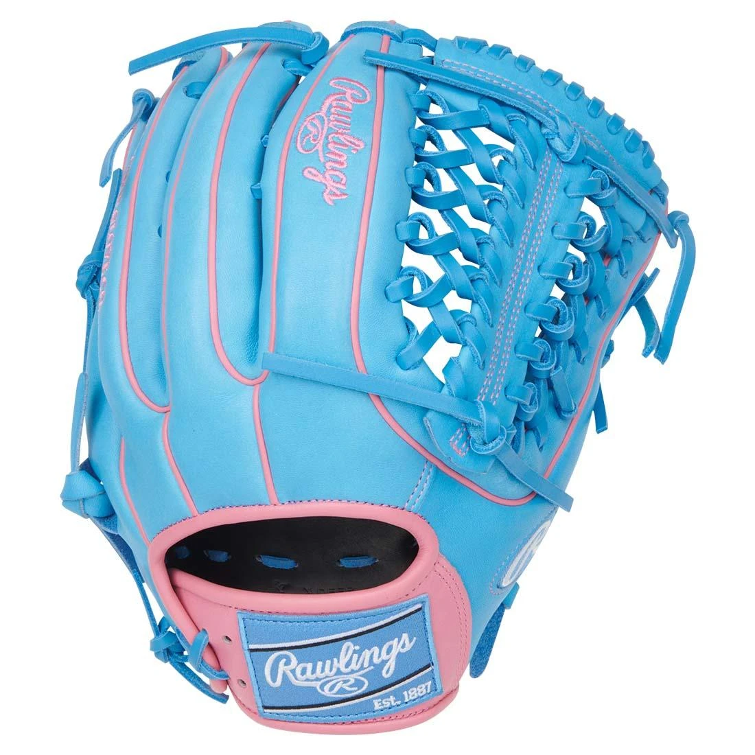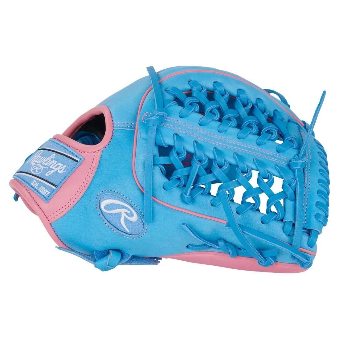 Flash serious leather in the gaps. The Rawlings Heart of the Hide 12.75″ (PROR3319-4CB) pairs a deep, rounded 3319 outfield pattern with a Modified Trapeze web for maximum reach and secure catches at full extension. Built with top-grade U.S. steerhide and part of the R2G line, it arrives 65% factory softened with a re-engineered heel pad—so you’re game-ready faster and only need about 35% player break-in. Inside, deertanned cowhide lining, a padded thumb sleeve, and thermoformed wrist padding lock in comfort and control. Finished in a bold Blue/Pink look with pro-grade laces for long-haul durability.